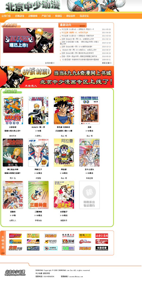 公司自創(chuàng)建以來,積極與國表里各大出書社相助。如今正在運營的書刊有數(shù)百種,此中《火影》(首印10萬套,上市月余即加?。ⅰ洱堉椤罚ㄉ鲜腥赇N量近千萬冊)、《鋼之煉金術(shù)師》、《網(wǎng)球王子》、《圣斗士》(已經(jīng)再版多次)、《水果籃子》、《阿拉蕾》、《三眼神童》、《龍狼傳》以及海內(nèi)最高程度的原創(chuàng)作品“四臺甫著”等多部漫繪圖書深受讀者接待,市場回聲極其火爆。