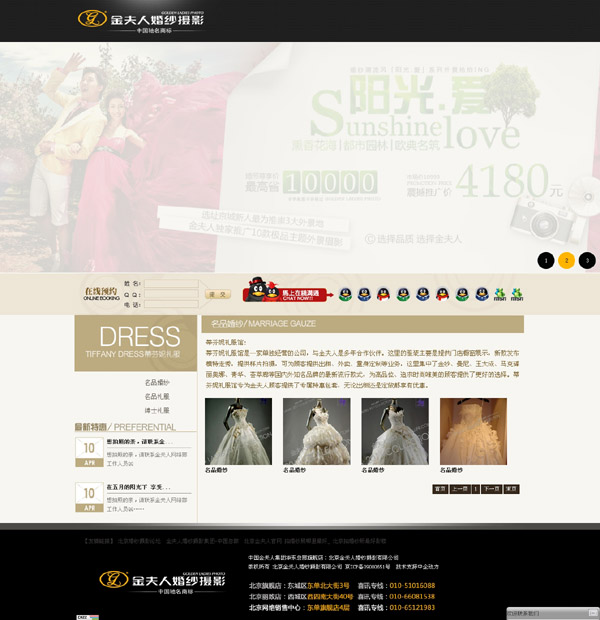 2006年北京金夫人婚紗照相有限公司VIP東單旗艦總店璀璨啟幕。以其3000平米的服務范疇,全數(shù)碼化作業(yè)流程 五星級服務尺度 堪稱業(yè)界代表作。