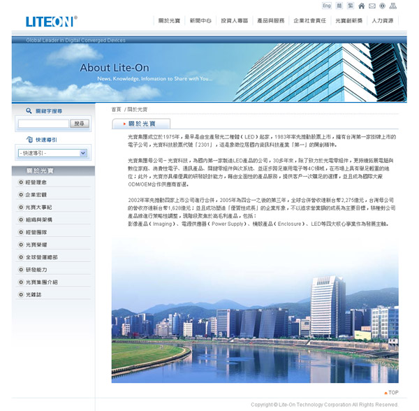 光寶集團母公司-光寶科技,為國內(nèi)第一家製造LED產(chǎn)品的公司,30多年來,除了致力於光電零組件,更持續(xù)拓展電腦與數(shù)位家庭、消費性電子、通訊產(chǎn)品、關(guān)鍵零組件與次系統(tǒng)、並漸漸跨足車用電子等4C領域,在市場上具有舉足輕重的職位;別的,光寶亦具備優(yōu)異的研發(fā)設計本領,藉由全面性的產(chǎn)品服務,提供客戶一次購足的選擇,並且成為國際大廠ODM/OEM相助供應商首選。