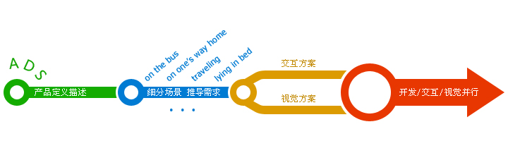從源頭的戰(zhàn)略層面上建立了統(tǒng)一的認知,我們接下來開展的工作就有根據(jù)了。既然核心是解決“移動場景聽歌“的問題,我們必須首先弄清楚什么是”移動場景“?移動環(huán)境和PC環(huán)境差異甚大,碎片時間的使用更為突出。用戶一天是怎么活動的呢?每次拿起手機聽音樂都是什么時間?上班的公車上、走路、晚上睡覺前?在這些點上用戶都會做些什么?簡單的腦暴可以羅列各個可能的使用場景,但還比較粗糙。場景的構想需要建立在高度的認知上,這時候用研的切入顯得相當關鍵,用戶特征、喜好、使用習慣…對用戶越了解,場景就越能貼近真實、越能發(fā)現(xiàn)更多的細節(jié)。這些都為后續(xù)的設計決策提供了有力的依據(jù)。