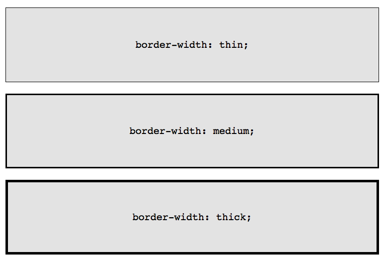 除了指定具體的邊框?qū)挾戎担部梢允褂眠@三個(gè)關(guān)鍵詞:thin,medium 和 thick。