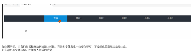 <!DOCTYPE html> <html> <head> <title>導(dǎo)航欄的做法之一</title> <style> /*這是導(dǎo)航條****************************************************************************/ /*容器是用來(lái)裝那個(gè)存放了a標(biāo)簽的div*/ .rongqi{ background:#2C323B; height:55px; width:100%; margin:80px 0px; } /*導(dǎo)航條里面各個(gè)a標(biāo)簽的總寬度,當(dāng)前是六個(gè)a的寬度,每個(gè)a寬度默認(rèn)是200px*/ #top{ //border:solid #fff 1px; margin:0px auto; width:1200px; height:55px; } /*hanghang是a標(biāo)簽的class*/ .hanghang{ font-size:20px; color:#DDDDDD; text-align:center; line-height:50px; float:left; width:200px; height:55px; margin-left:0px; list-style-type:none; background:#2C323B; text-decoration:none; } .hanghang:hover{ list-style-type:none; color:#ffffff; font-weight:800; background:#0C8ED9; } /*****************************************************************************這是導(dǎo)航條/ </style> </head> <body> <!--這是導(dǎo)航條***************************************************************************--> <div class="rongqi"> <div id="top"> <a class="hanghang" href="#">首頁(yè)</a> <a class="hanghang" href="#">導(dǎo)航1</a> <a class="hanghang" href="#">導(dǎo)航2</a> <a class="hanghang" href="#">導(dǎo)航3</a> <a class="hanghang" href="#">導(dǎo)航4</a> <a class="hanghang" href="#">導(dǎo)航5</a> </div> </div> <!--***************************************************************************這是導(dǎo)航條--> </body> </html>