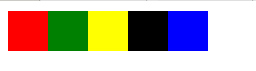 <html> <head> <style type="text/css"> .div1 { height:40px; width:40px; background-color:red; position:releative; float:left; clear:left; } .div2 { height:40px; width:40px; background-color:green; position:relative; float:left; clear:left; } .div3 { height:40px; width:40px; background-color:yellow; position:relative; float:left; clear:left; } .div4 { height:40px; width:40px; background-color:black; position:relative; float:left; clear:left; } .div5 { height:40px; width:40px; background-color:blue; position:relative; float:left; clear:left; } </style> </head> <body> <div class="div1"> </div> <div class="div2"> </div> <div class="div3"> </div> <div class="div4"> </div> <div class="div5"> </div> </body> </html>