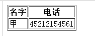 <table border="1"> <tr> <th>名字</th> <th>電話</th> </tr> <tr> <td>甲</td> <td>45212154561</td> </tr> </table>