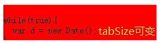 <head> <meta charset="UTF-8"> <title>Document</title> <style> pre, code{ font-family: monospace; } pre{ white-space: pre; background: red; tab-size: 2; display: block; } </style> </head> <body> <pre><code> while(true){ var d = new Date(); } </code></pre> </body>